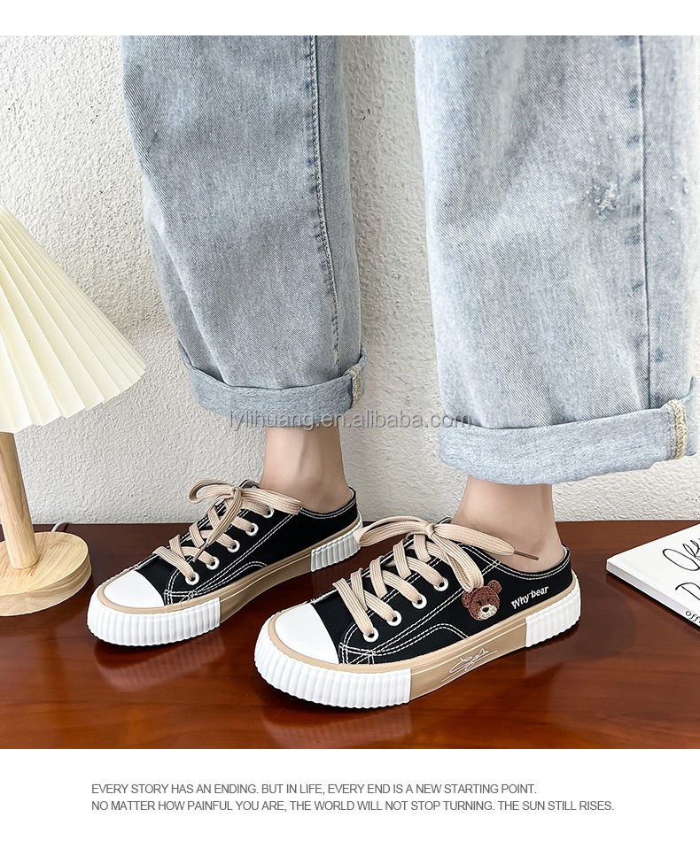 ছাড়2025 spring fashion low top shallow mouth canvas shoes for women without heels, half back shoes, trendy